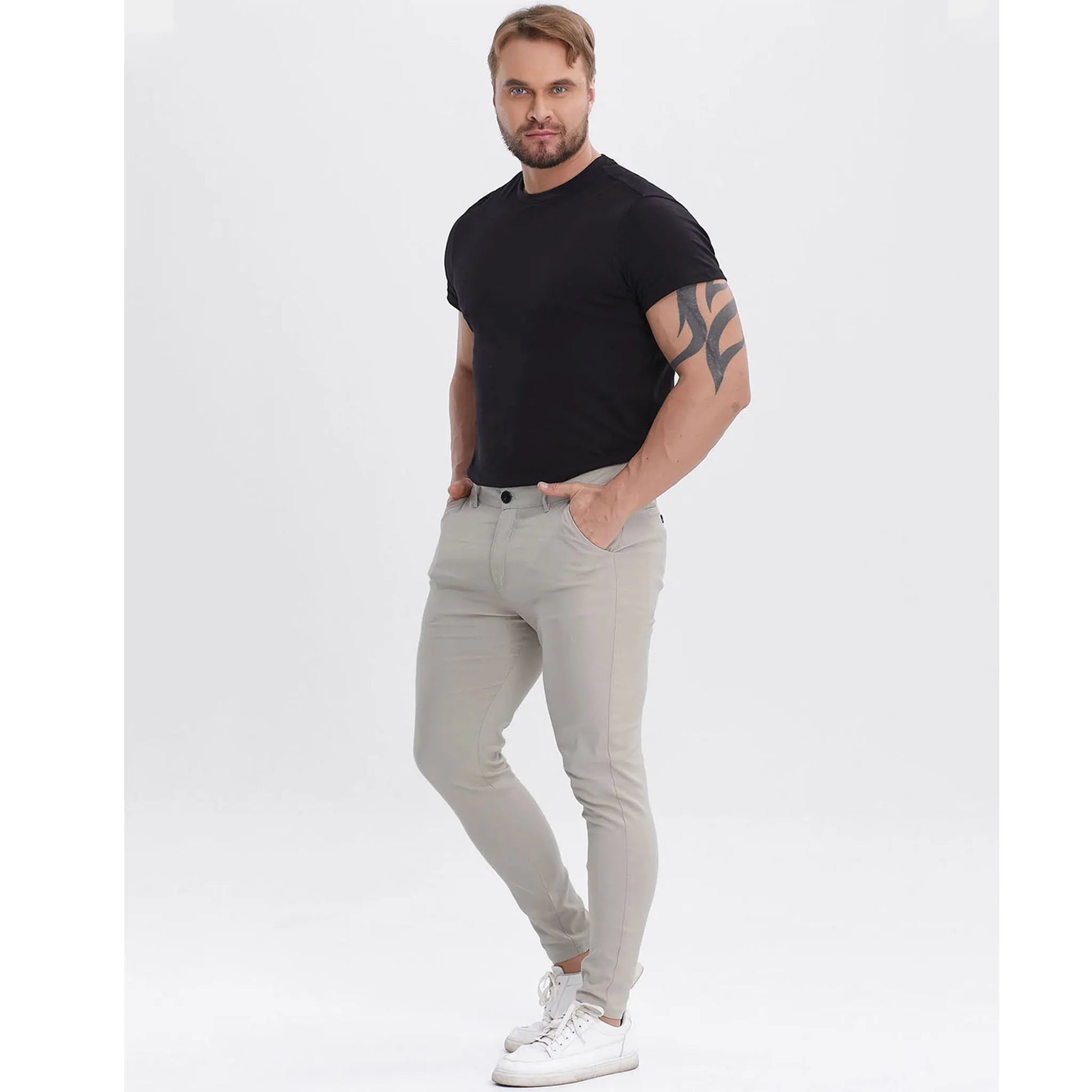 • Skinny Tapered Fit Leg, This men's chino pants comes in a skinny leg, high waist design, please go one size up if you enjoy more relaxed and room for the leg.
