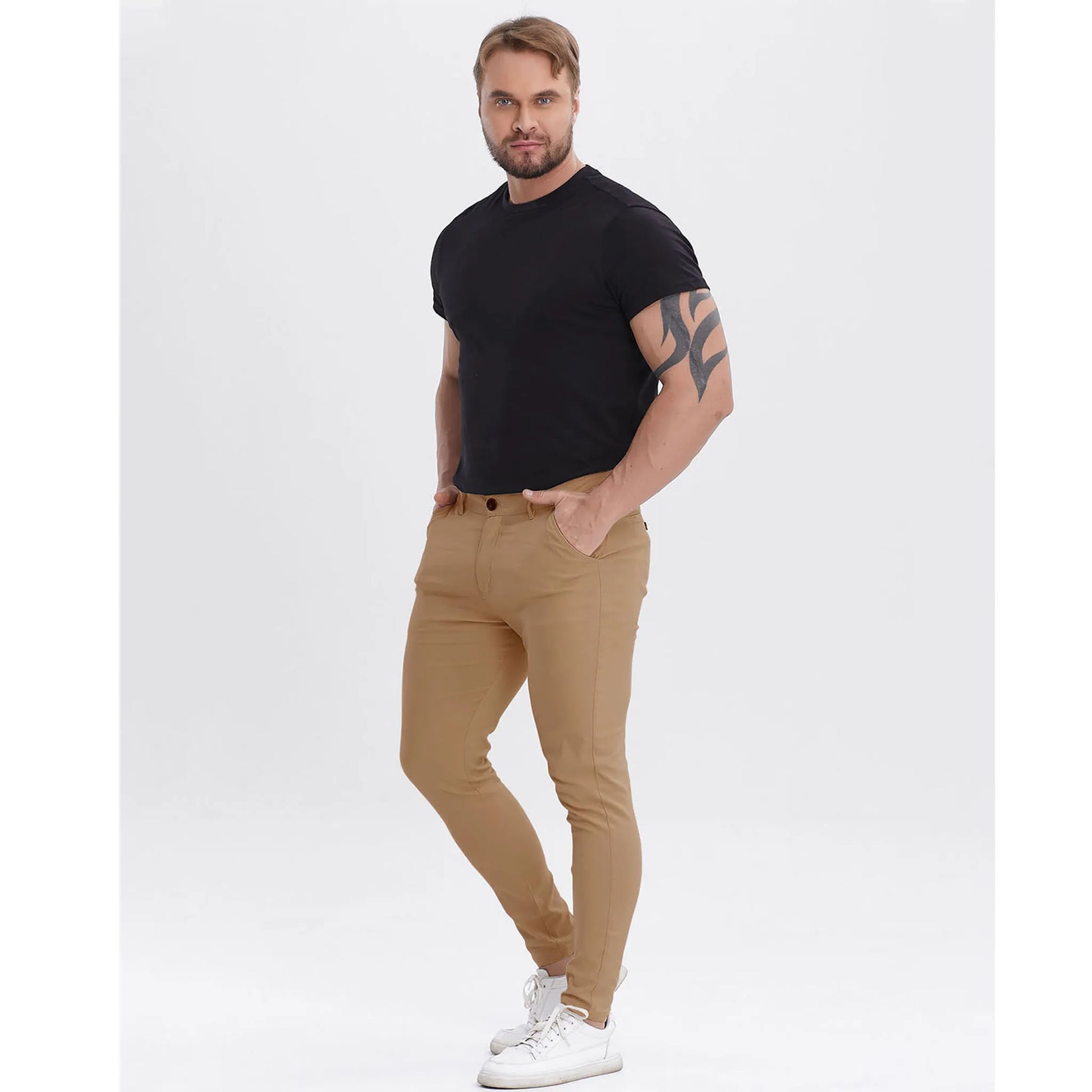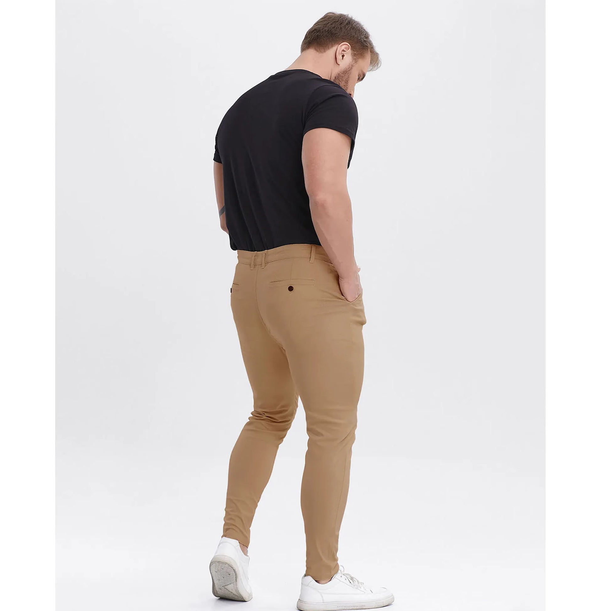 • Skinny Tapered Fit Leg, This men's chino pants comes in a skinny leg, high waist design, please go one size up if you enjoy more relaxed and room for the leg.