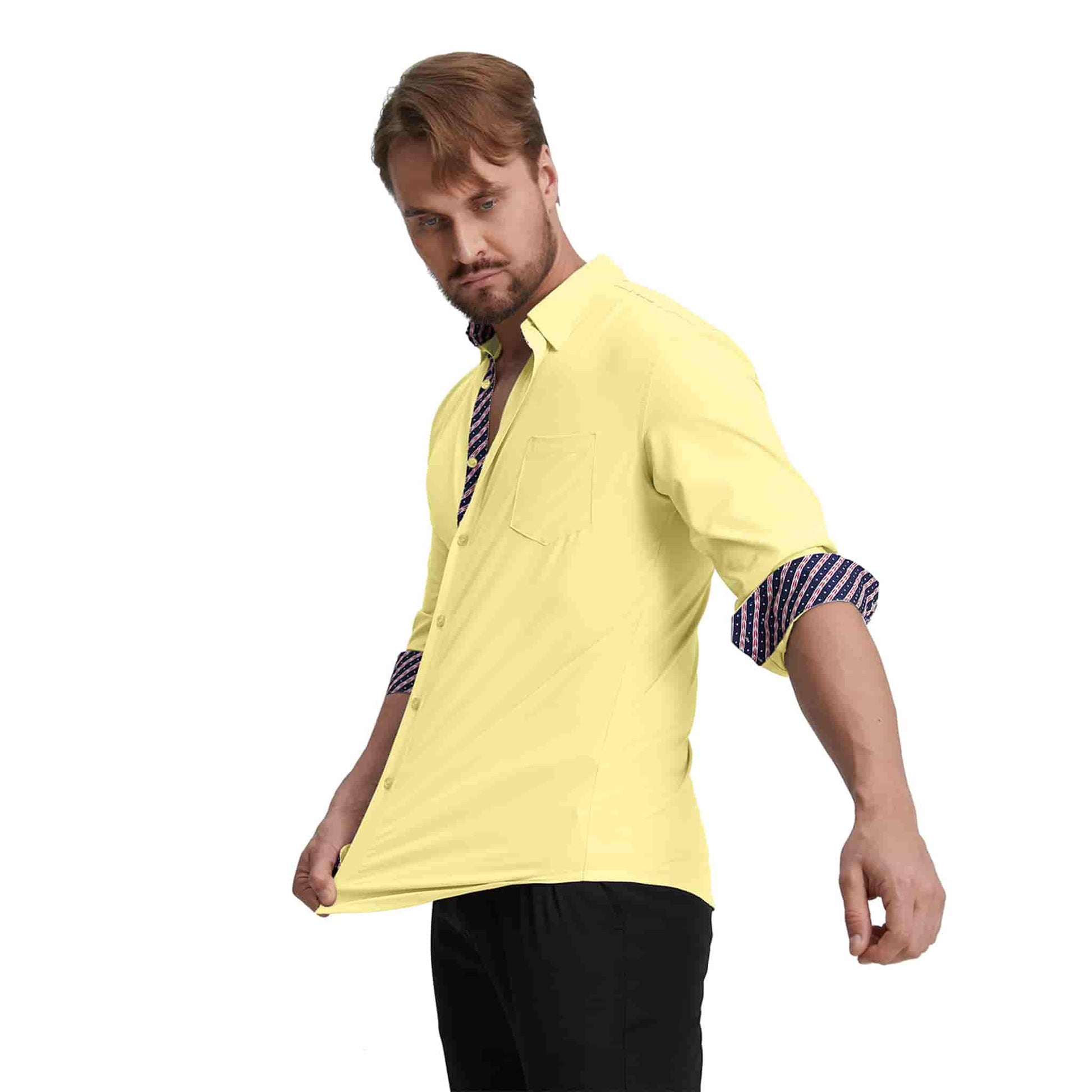 Men's Long Sleeve Dress Shirts Slim Fit Inner Contrast Business Casual Button Down Yellow Shirt